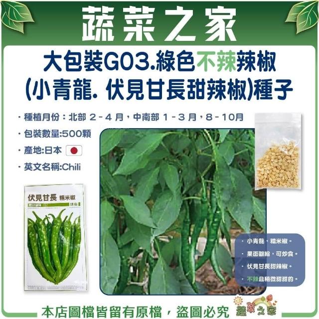 蔬菜之家00G03大包裝.綠色不辣辣椒小青龍. 伏見甘長甜辣椒種子500顆