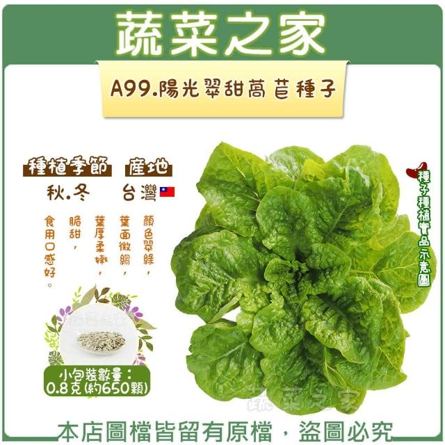 蔬菜之家A99.陽光翠甜萵苣種子0.8克約650顆顏色翠綠,葉面微縐,葉厚柔嫩