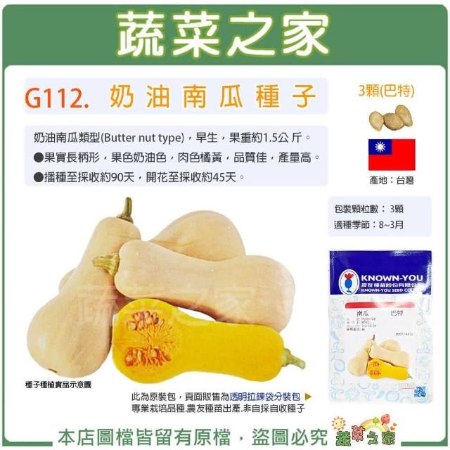 蔬菜之家G112.奶油南瓜種子3顆巴特早生、品質優良之奶油南瓜 肉色橘黃,品質佳,產量高