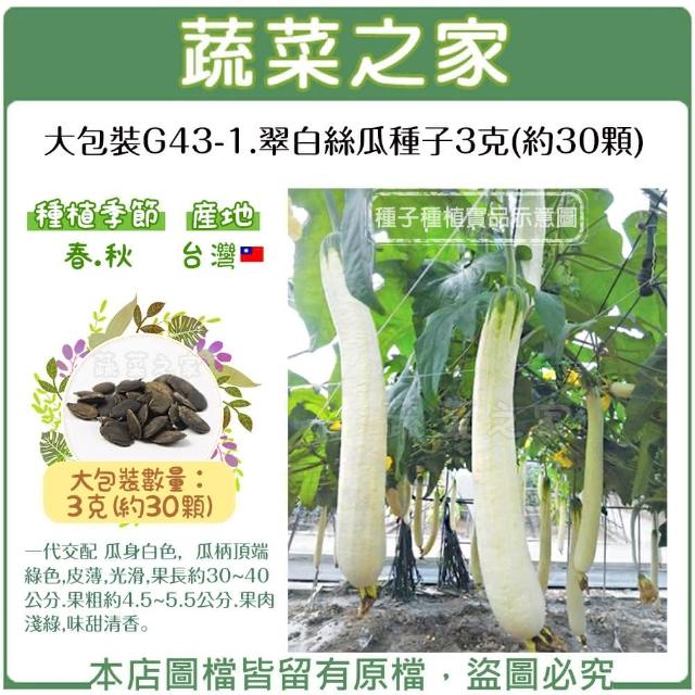 蔬菜之家大包裝G43-1.翠白絲瓜種子3克約30顆一代交配 瓜身白色,瓜柄頂端綠色,皮薄,光滑