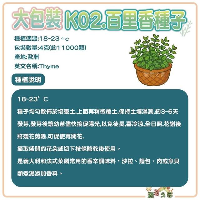 蔬菜之家00K02大包裝.百里香種子4克約11000顆香草種子種植適溫:18~23。c白花