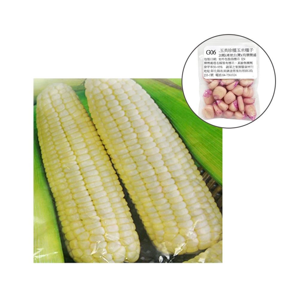 蔬菜之家G06.玉美珍(珍珠糯玉米)種子20顆(有藥劑處理) (植株矮.穗粗大Q甜.易照顧.產量多)