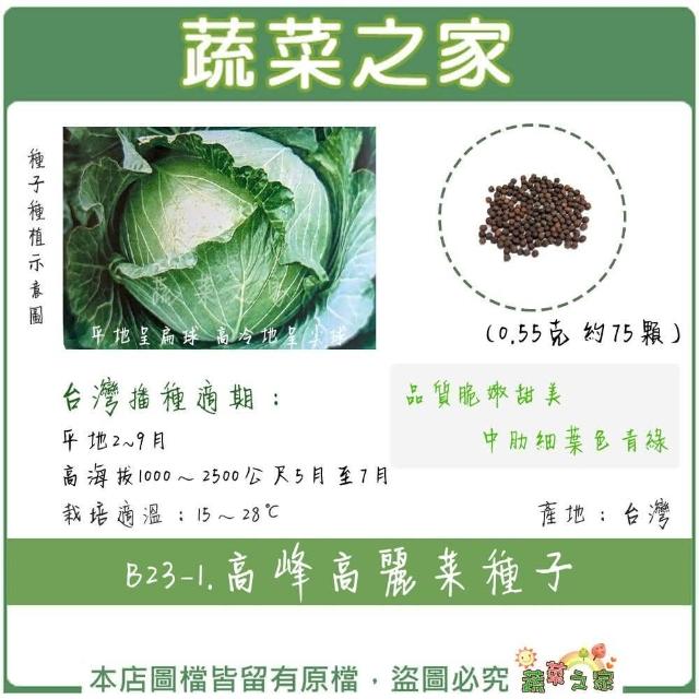 蔬菜之家B23-1.高峰高麗菜種子 0.55克約75顆平地呈扁球;高冷地呈尖球