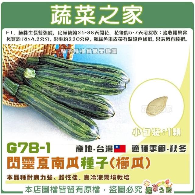 蔬菜之家G78-1.閃靈夏南瓜種子1顆櫛瓜 F1 植株生長勢強健,本品種耐病力強、雌性佳