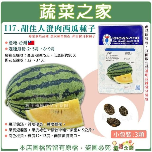 蔬菜之家I17.甜佳人澄肉西瓜種子3顆肉質佳,肥大好,產量高 糖度穩定 肉質細脆爽口