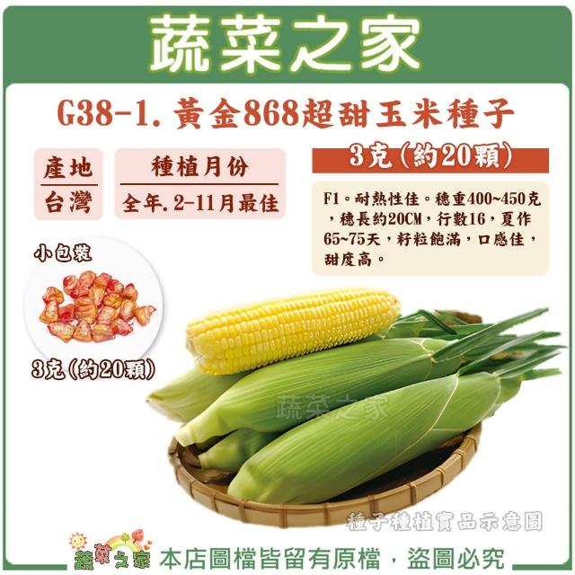 蔬菜之家G38-1.黃金868超甜玉米種子3克約20顆有藥劑處理 籽粒飽滿,口感佳,甜度高果菜類種子