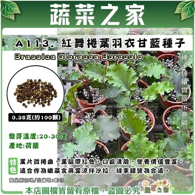 蔬菜之家大包裝A113.紅舞捲葉羽衣甘藍種子8克約2400顆葉片微捲曲,葉脈帶紅色,口感清脆,營養價值