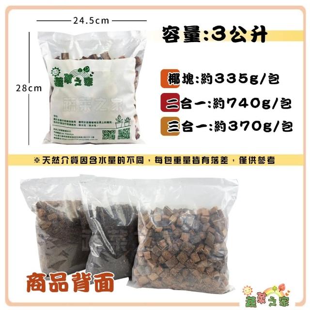 蔬菜之家天然椰塊系列3公升分裝包 椰塊/二合一椰塊+椰纖/三合一椰塊+椰纖+椰絲經水洗椰纖塊 觀葉蘭花多肉