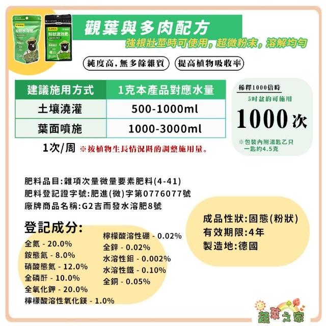 蔬菜之家花田綠地粉狀水溶肥速效肥100g (觀葉與多肉、水耕與室內植物、幼苗與葉菜類、通用、開花結果) 肥料