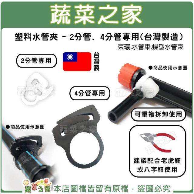 蔬菜之家塑料水管夾2分管、4分管專用台灣製造 園藝 束環.水管束.蝶型水管束 可重複拆卸使用簡單方便