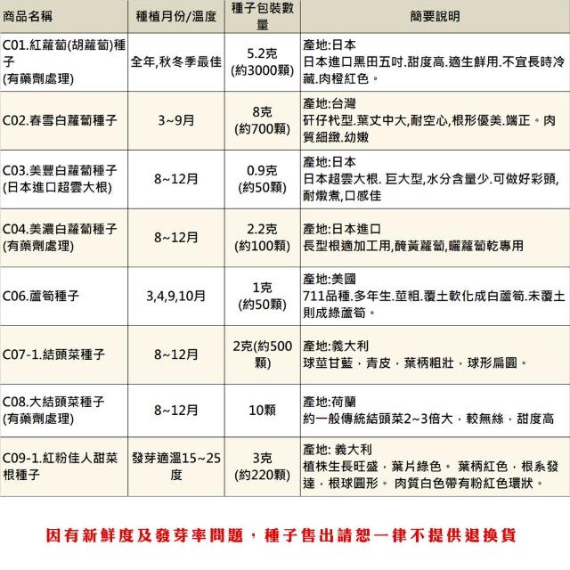 蔬菜之家根莖類種子系列(各包裝數量詳見內文及圖片) 蘿蔔種子 紅蘿蔔 白蘿蔔 結頭菜 牛蒡 豆薯 甜菜根 蘆筍