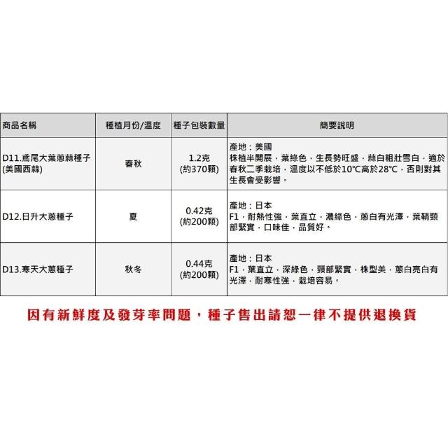 • 》客製化商品、特殊包裝商品、(土壤、介質、肥料不得拆封一經拆封請恕無法退換貨),種子因為有保存及發芽率問題,所以請恕一律不提供退換貨,若您可以接受再下單喔! 》園藝商品主要供應栽培大量使用,品質及規格的標示精緻度無法如店面看到實品標準,請會員多加留意,如無法同意者切勿下單購買喔! 》因有些土壤介質或商品原包裝標示不清楚,所以我們只能依據我們測量出來大約值標示,本站皆會儘量測量正確,使其儘量無誤差,而實際商品有時會因濕度或其他因素而導致容量(重量)與實際稍有落差,商品顏色也會因電腦畫質或解析度不同等因素而導致顏色不同,顏色以實際商品顏色為主,本站不接受容量(重量)、顏色不符等此原因退換貨,若無法同意者請勿購買喔!