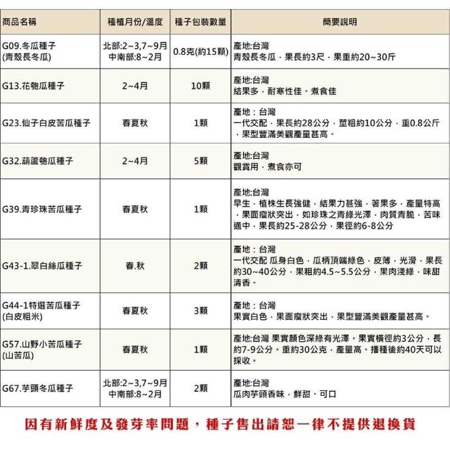 • 》客製化商品、特殊包裝商品、(土壤、介質、肥料不得拆封一經拆封請恕無法退換貨),種子因為有保存及發芽率問題,所以請恕一律不提供退換貨,若您可以接受再下單喔! 》園藝商品主要供應栽培大量使用,品質及規格的標示精緻度無法如店面看到實品標準,請會員多加留意,如無法同意者切勿下單購買喔! 》因有些土壤介質或商品原包裝標示不清楚,所以我們只能依據我們測量出來大約值標示,本站皆會儘量測量正確,使其儘量無誤差,而實際商品有時會因濕度或其他因素而導致容量(重量)與實際稍有落差,商品顏色也會因電腦畫質或解析度不同等因素而導致顏色不同,顏色以實際商品顏色為主,本站不接受容量(重量)、顏色不符等此原因退換貨,若無法同意者請勿購買喔!