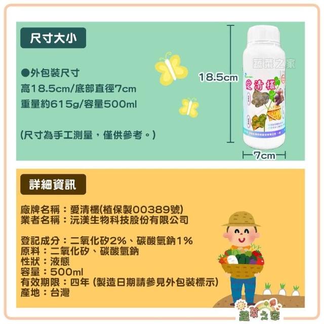 蔬菜之家愛清欉500ml(對白粉病、銹病、灰黴病效果佳 可防治葉部病害 土壤傳播性病害 二氧化矽 碳酸氫鈉)