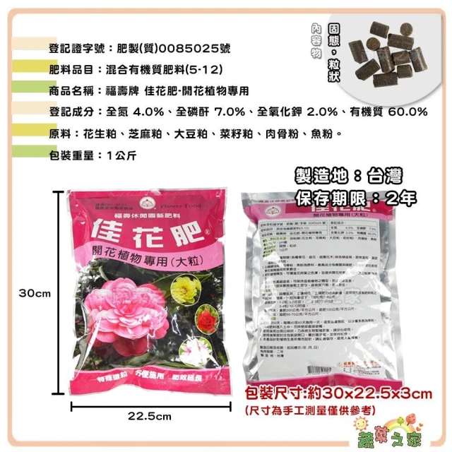蔬菜之家福壽牌佳花肥盆栽專用大粒玉肥-開花植物專用4-7-2 1公斤 花卉專用肥料肥料 果肥 花肥 有機肥 天然肥料