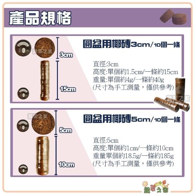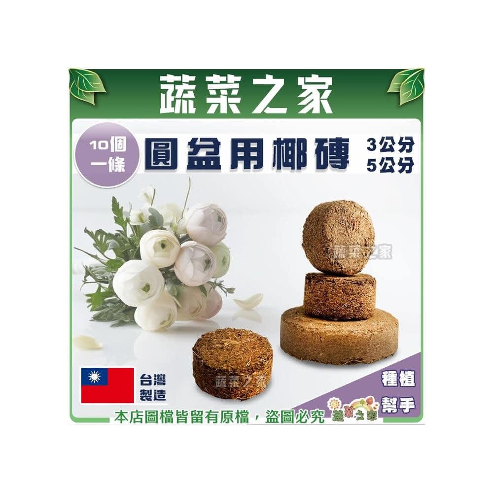 蔬菜之家圓盆用椰磚3cm、5cm 10個條(發酵 殺菌 熱處理 育苗用壓縮椰纖土 介質 小椰盤 園藝)