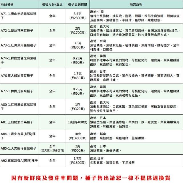 蔬菜之家全年可栽培 短期收成葉菜類種子系列 (各種包裝數量詳見內文及圖片) 青江菜 白菜 芥藍菜 空心菜種子