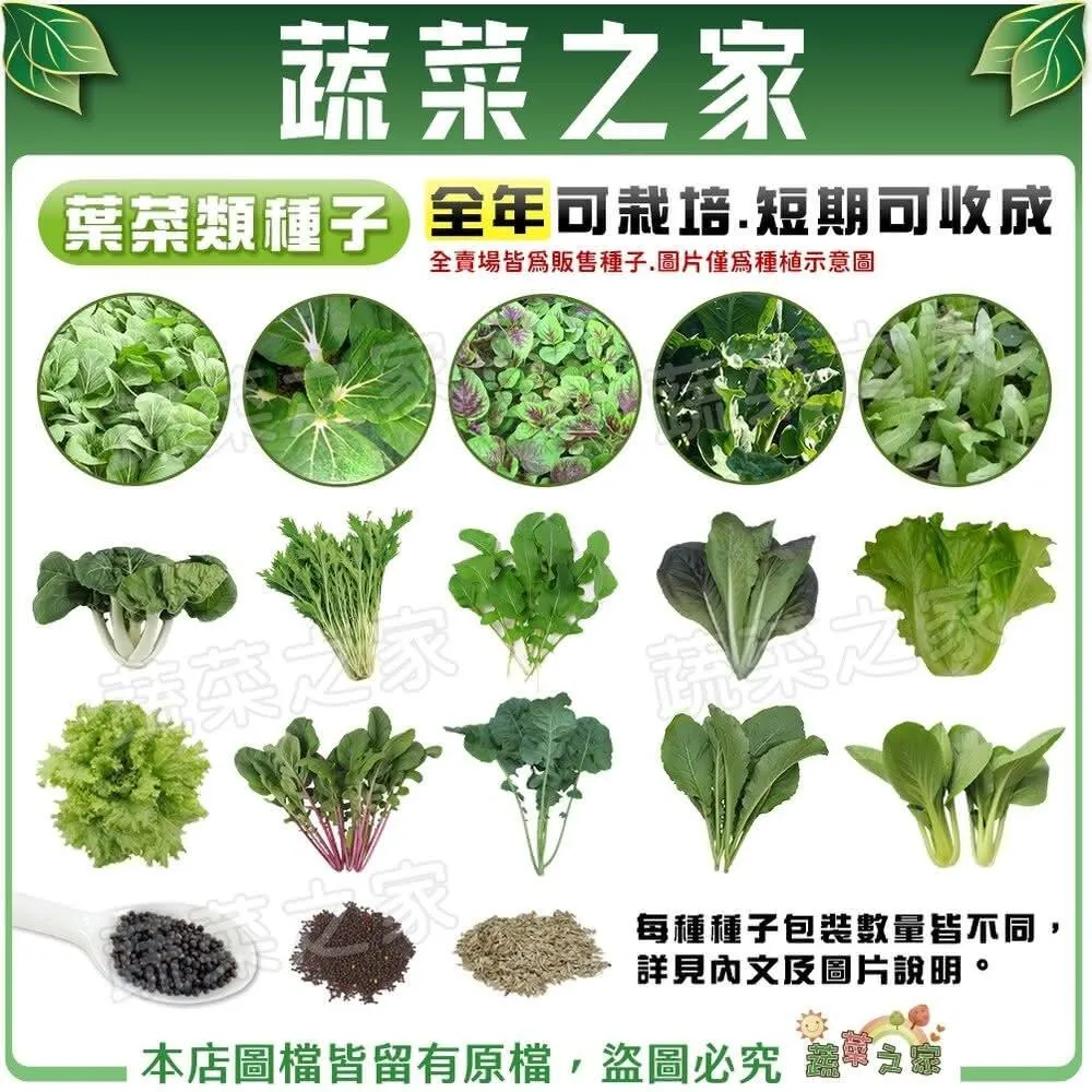 蔬菜之家全年可栽培 短期收成葉菜類種子系列 (各種包裝數量詳見內文及圖片) 青江菜 白菜 芥藍菜 空心菜種子