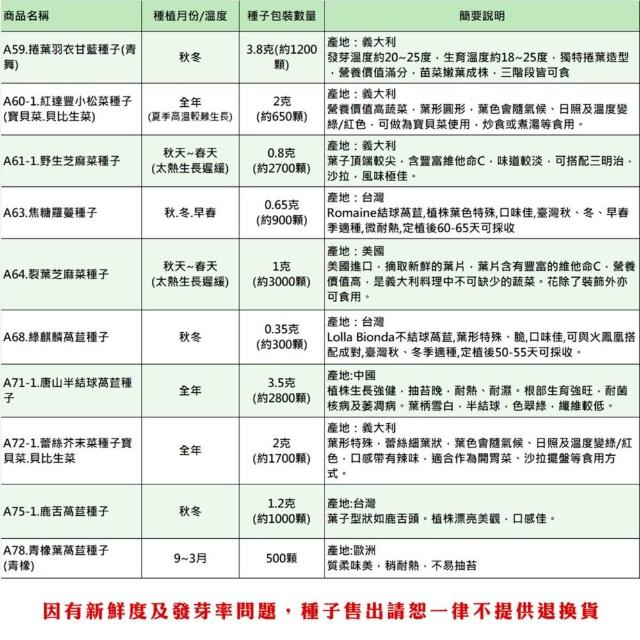 蔬菜之家新手生菜類種子系列一各包裝數量詳見內文及圖片說明水耕種子 水耕蔬菜 萵苣 羽衣甘藍 生機飲食