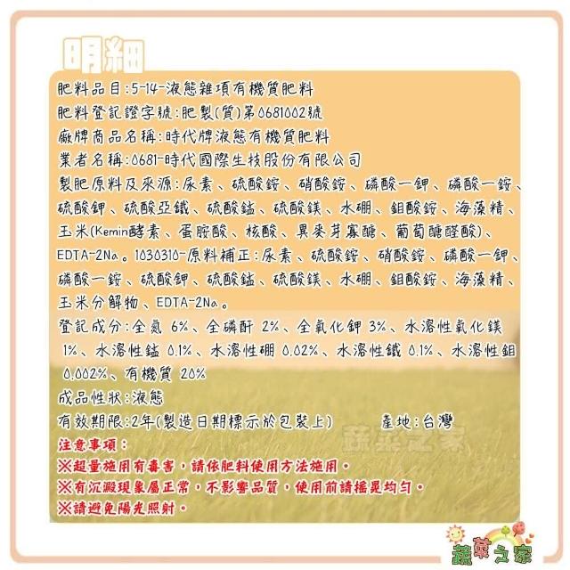 蔬菜之家時代牌液態有機質肥料6-2-3速效液肥1公升(營養肥料有機質肥料水耕栽培魚菜共)