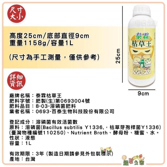 蔬菜之家泰霖枯草王1公升(溶磷菌含枯草桿菌Y1336 打破土壤連作困局 改善土壤結構 幫助根系生長 根部生長肥料)