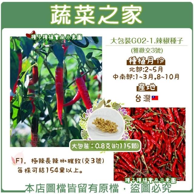 蔬菜之家大包裝G02-1.辣椒種子0.8克約115顆(雅緻交3號F1極辣長辣椒雅致交3號 種子 辣椒種子 辣椒 香料種子)