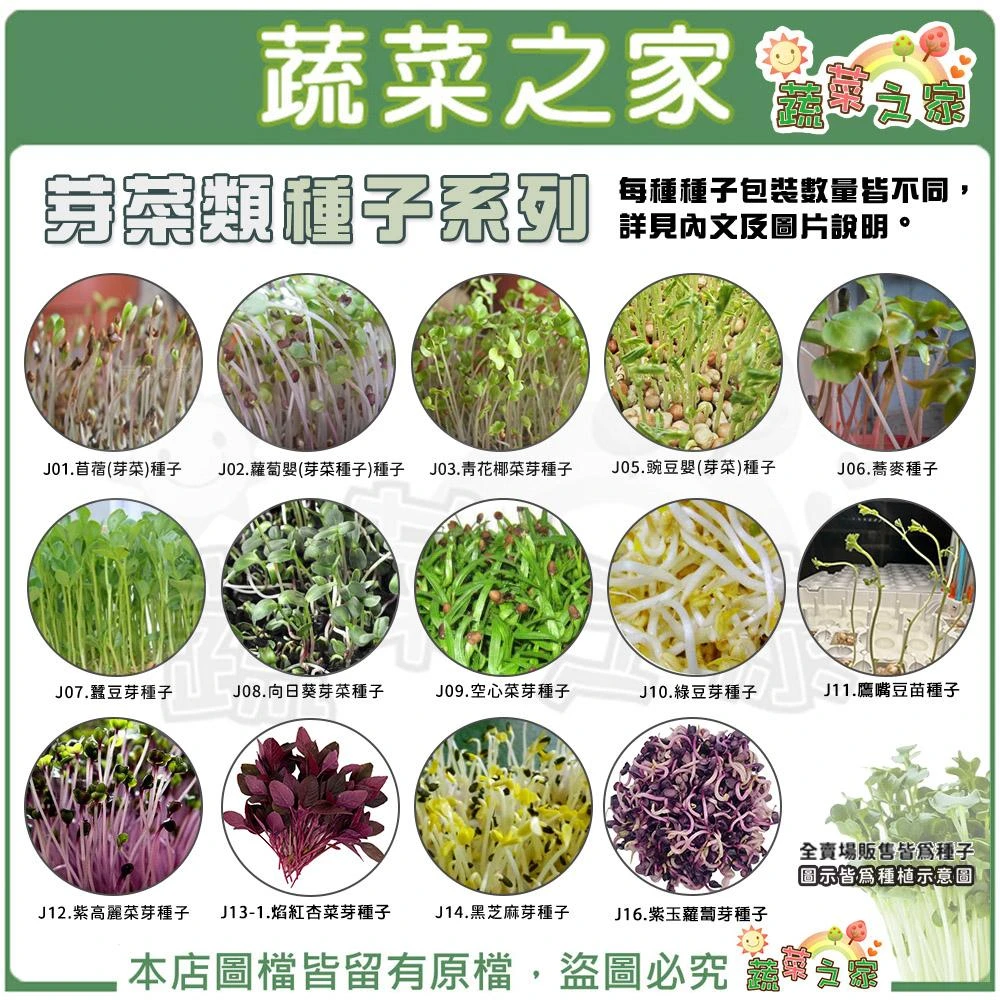 蔬菜之家芽菜類種子系列(各包裝數量詳見內文及圖片說明苜蓿芽 蘿蔔嬰 青花椰菜芽 小麥草 豌豆嬰 紫高麗菜芽)