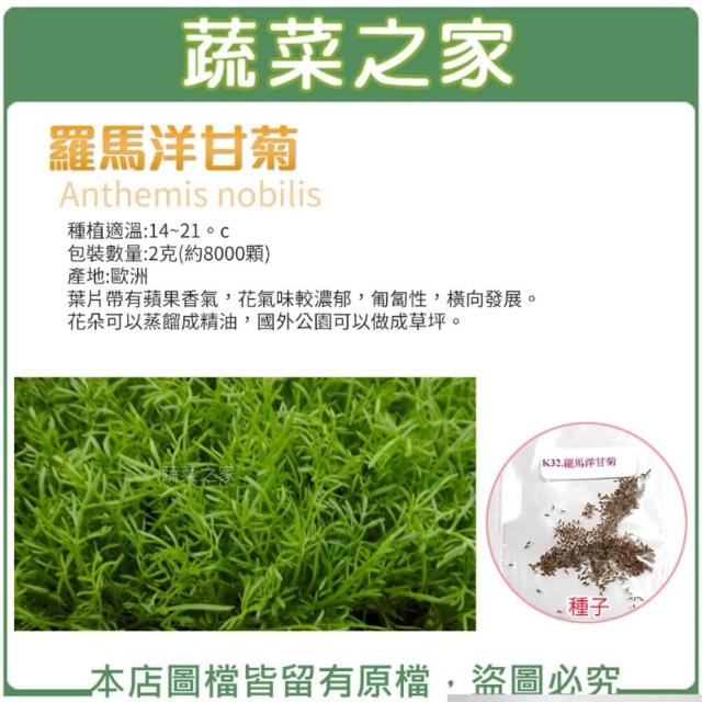 蔬菜之家大包裝K32.羅馬洋甘菊種子2克約8000顆(花朵可以蒸餾成精油國外公園可以做成草坪 香草種子 洋甘菊)