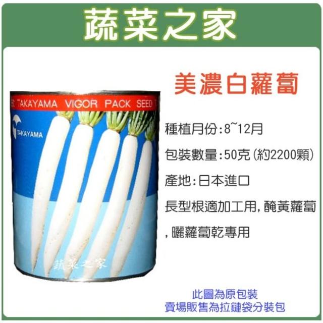 蔬菜之家00C04大包裝美濃白蘿蔔種子50克約2200顆 有藥劑處理(長型根適加工用醃黃蘿蔔曬蘿蔔)