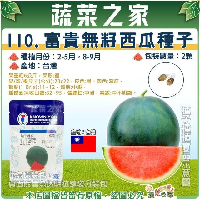 蔬菜之家I10.富貴無籽西瓜種子2顆(產地台灣果重約6公斤糖度11~12中脆圓果黑皮 水果類種子)