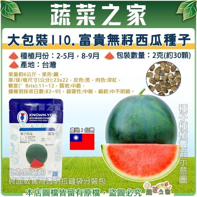 蔬菜之家00I10.大包裝富貴無籽西瓜種子2克約30顆(果重約6公斤糖度11~12中脆圓果黑皮)
