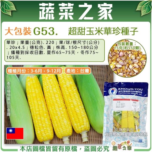 蔬菜之家00G53大包裝.超甜玉米華珍種子75克約550顆產量高。糖分保持力長。 果菜類大包裝