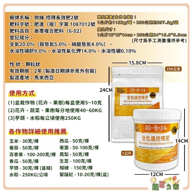 蔬菜之家控釋長效肥、控釋長效肥2號、控釋長效肥3號、控釋尿素氮肥 1公斤、250公克(多肉肥料 緩效型肥料)
