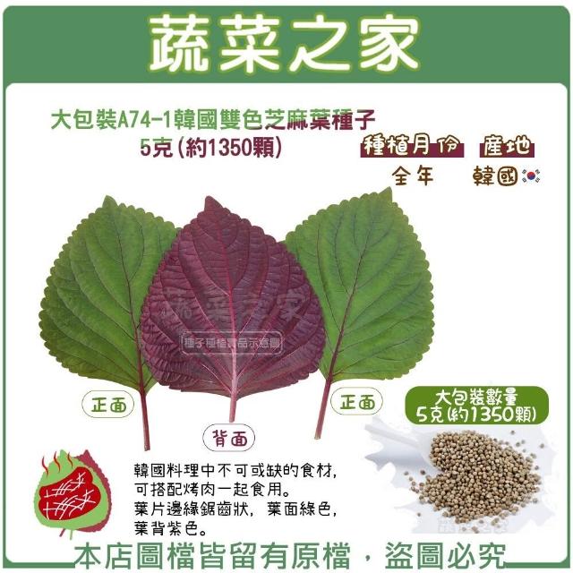 蔬菜之家大包裝A74-1.韓國雙色芝麻葉種子5克約1350顆韓國料理中不可或缺的食材可搭配烤肉一