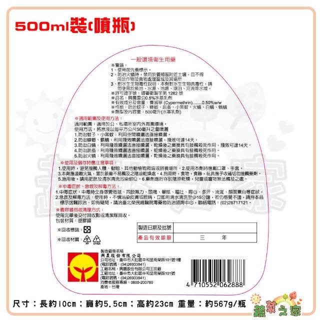 興農興農雷公殺蟲劑500ml裝 防蟲 害蟲 除蚊 蚊子 蚊蟲 蟑螂 跳蚤 白蟻 火蟻 小黑蚊 螞蟻 盆栽