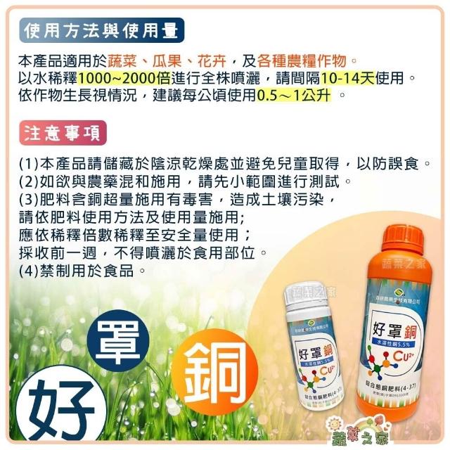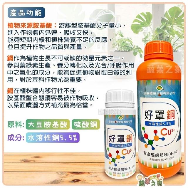 蔬菜之家好罩銅 水溶性銅5.5% 鉗合態銅肥料 胺基酸螯合態銅 易吸收 易補充 促進植物對蛋白質的利用