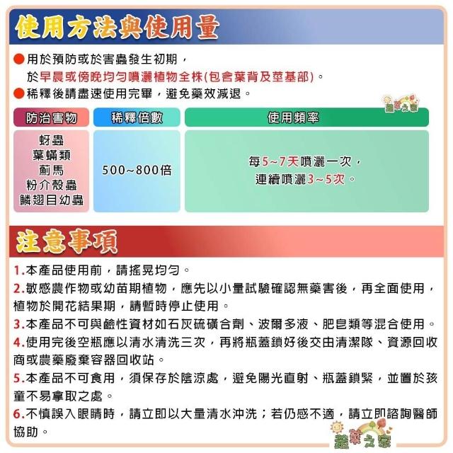 蔬菜之家打蚜劑500cc 新型苦楝油 降低高溫藥傷 水溶性 防除害蟲用 蚜蟲 葉蟎類 薊馬 粉介殼蟲 鱗翅目