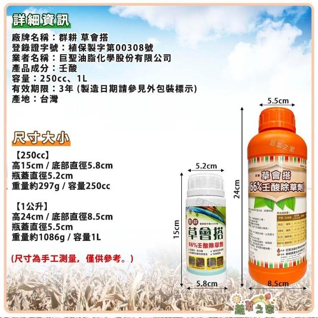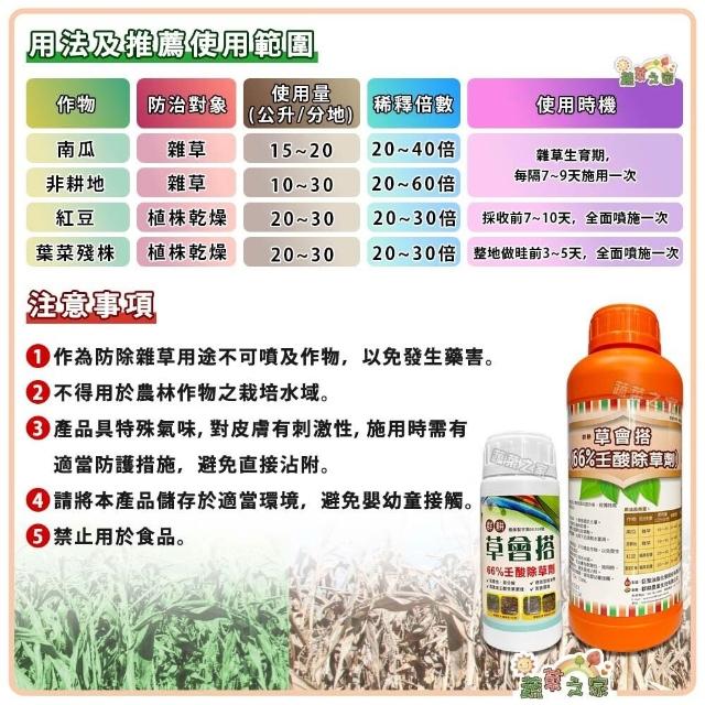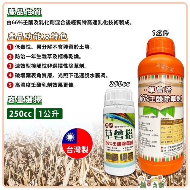 蔬菜之家草會搭濃縮液250cc、1公升 66%壬酸除草劑 雜草 植株乾燥 除草 無毒 鋤草 雜草 除草劑 除