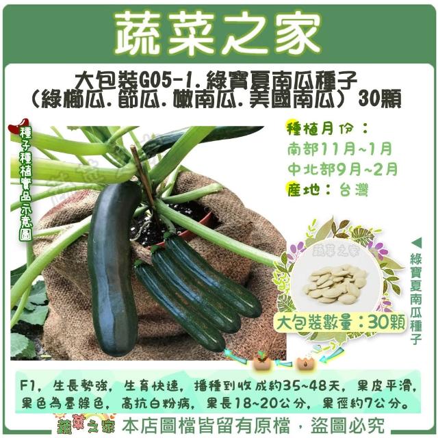 蔬菜之家00G05-1大包裝.綠寶夏南瓜(櫛瓜)種子30顆 節瓜 櫛瓜 夏南瓜 果菜種