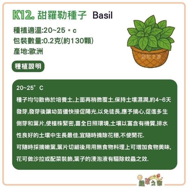 蔬菜之家K12.甜羅勒種子0.2克約130顆增加食物美味沙拉或配菜裝飾香草類種子