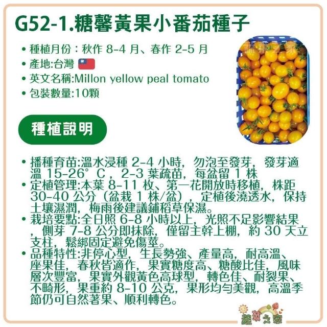 蔬菜之家G52-1.糖馨黃果小番茄種子10顆 台農2號 甜度媲美 玉女 小番茄種子 糖度高 耐熱高產量 座果