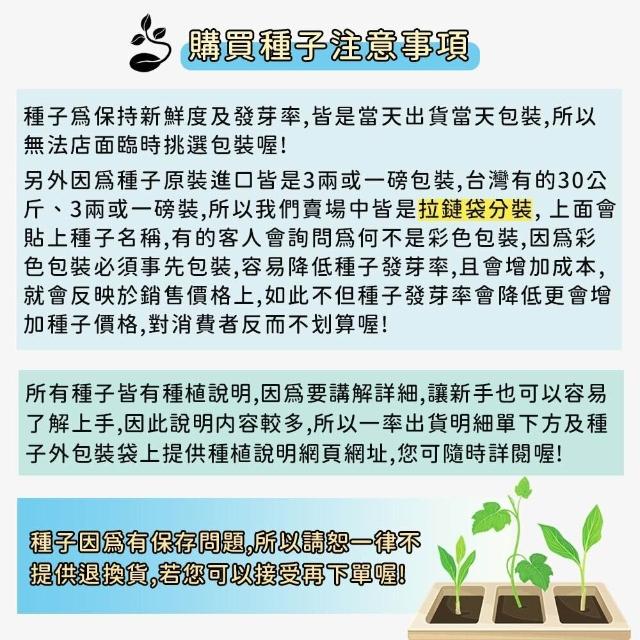 • 》客製化商品、特殊包裝商品、(土壤、介質、肥料不得拆封一經拆封請恕無法退換貨),種子因為有保存及發芽率問題,所以請恕一律不提供退換貨,若您可以接受再下單喔! 》園藝商品主要供應栽培大量使用,品質及規格的標示精緻度無法如店面看到實品標準,請會員多加留意,如無法同意者切勿下單購買喔! 》因有些土壤介質或商品原包裝標示不清楚,所以我們只能依據我們測量出來大約值標示,本站皆會儘量測量正確,使其儘量無誤差,而實際商品有時會因濕度或其他因素而導致容量(重量)與實際稍有落差,商品顏色也會因電腦畫質或解析度不同等因素而導致顏色不同,顏色以實際商品顏色為主,本站不接受容量(重量)、顏色不符等此原因退換貨,若無法同意者請勿購買喔!