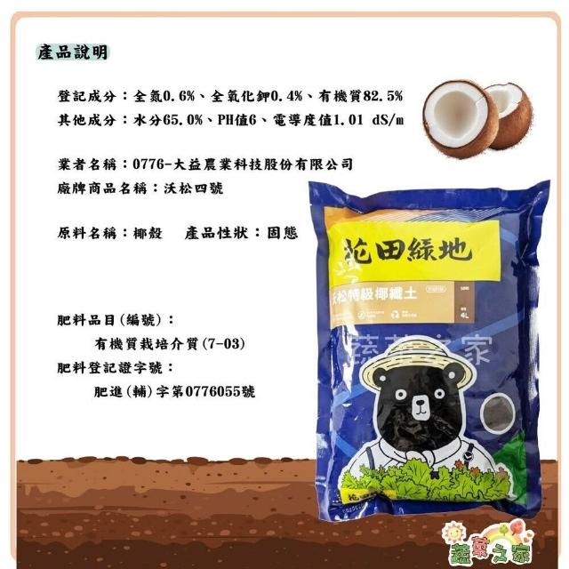 蔬菜之家花田綠地沃松特級椰纖土4公升椰纖即具有保水保肥的特性可與泥炭土混合增加排水性透氣性 沃松四號