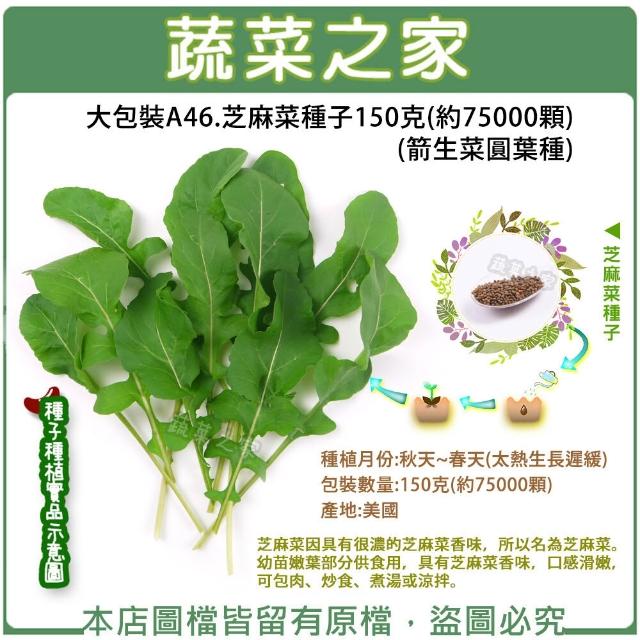 蔬菜之家大包裝A46.芝麻菜種子 150克/500克 箭生菜圓葉種嫩葉部分供食用 具有芝麻菜香味 口感滑