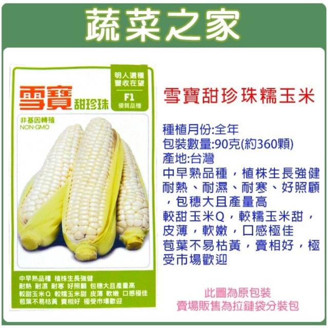 蔬菜之家00G34大包裝.雪寶甜珍珠糯玉米種子90克約360顆有藥劑處理蔬菜種子