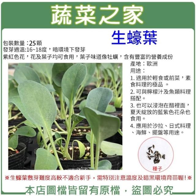 蔬菜之家00K31大包裝.生蠔葉種子25顆葉子味道像牡蠣含有豐富的營養成份 多被應用於法國菜沙拉香