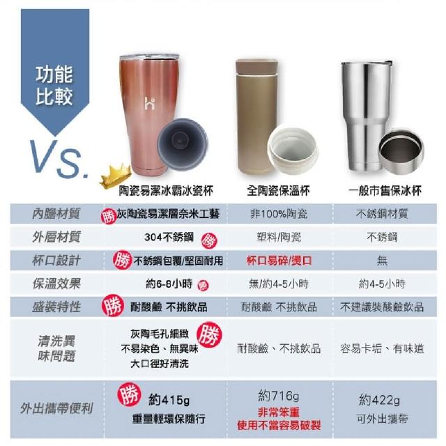 Ho覓好物900ml 陶瓷冰壩杯 灰陶瓷 不卡味冰霸杯 冰壩杯 保冰杯 陶瓷內膽保溫杯 保溫杯 飲料杯