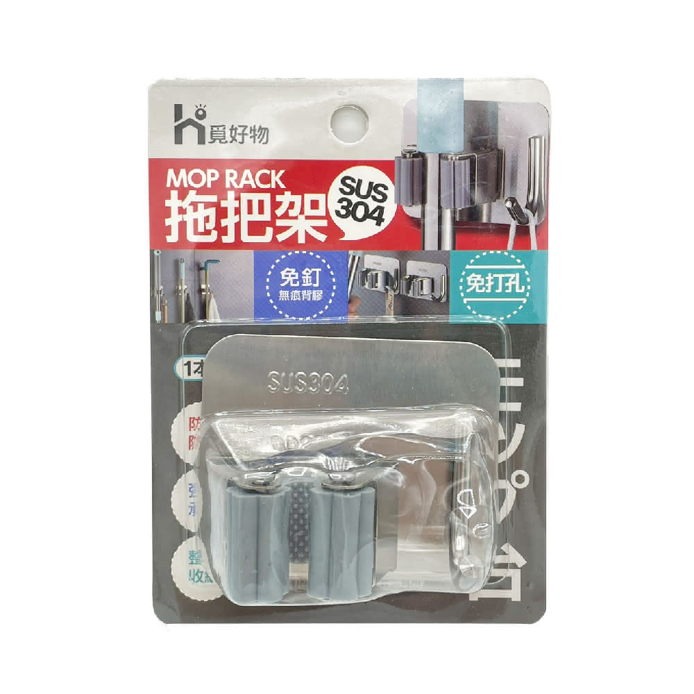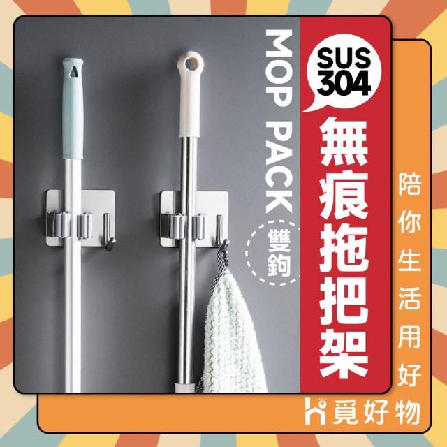 Ho覓好物304不鏽鋼 拖把架 無痕拖把架 無痕掛勾拖把掛架 拖把架 掃把架 掃具夾 JP2085