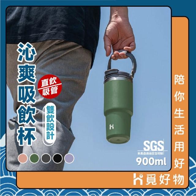 Ho覓好物900ML 沁爽吸飲杯 SGS認證 304不鏽鋼手提冰霸杯 雙飲保溫杯 不鏽鋼保溫杯 吸管杯 HM035