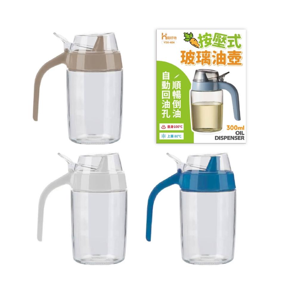 Ho覓好物按壓式油壺 玻璃油壺 300ml 健康油壺 油壺 調味瓶 醬油瓶 油瓶 玻璃油瓶 玻璃調味瓶 YDX404